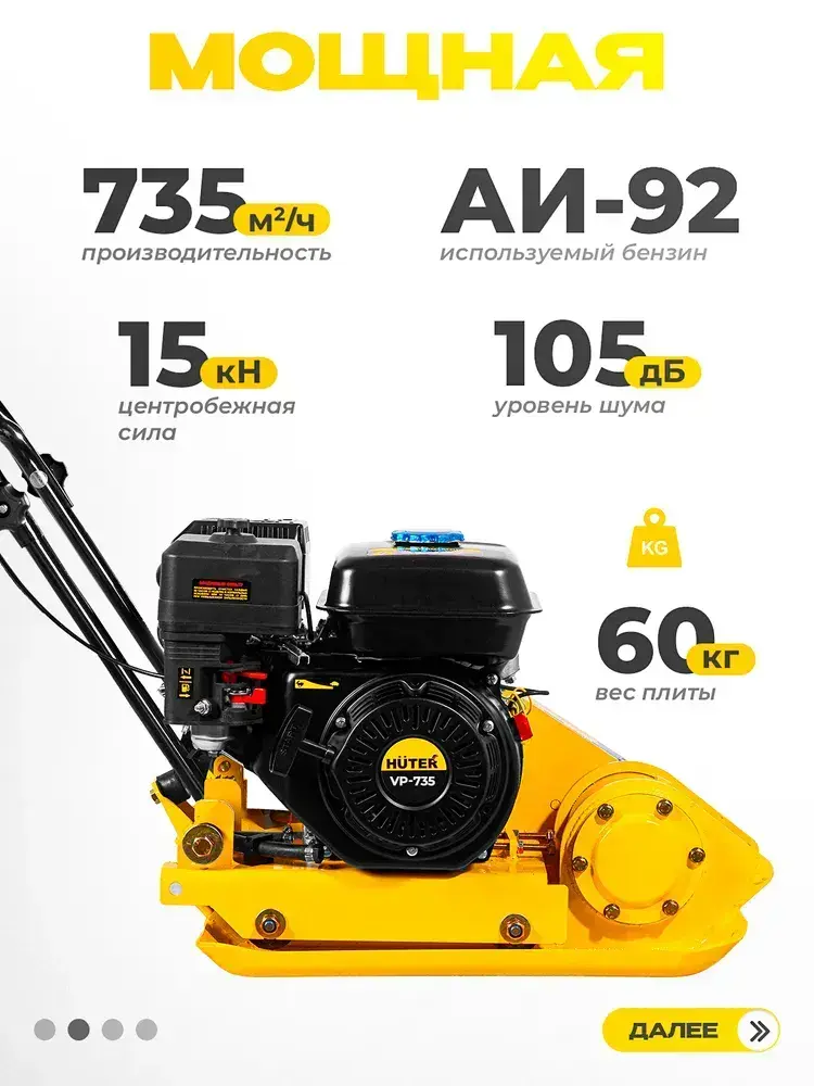 Виброплита бензиновая VP-735 Huter - двигатель 6,5 лс, площадка 530*350 мм, вес 60кг