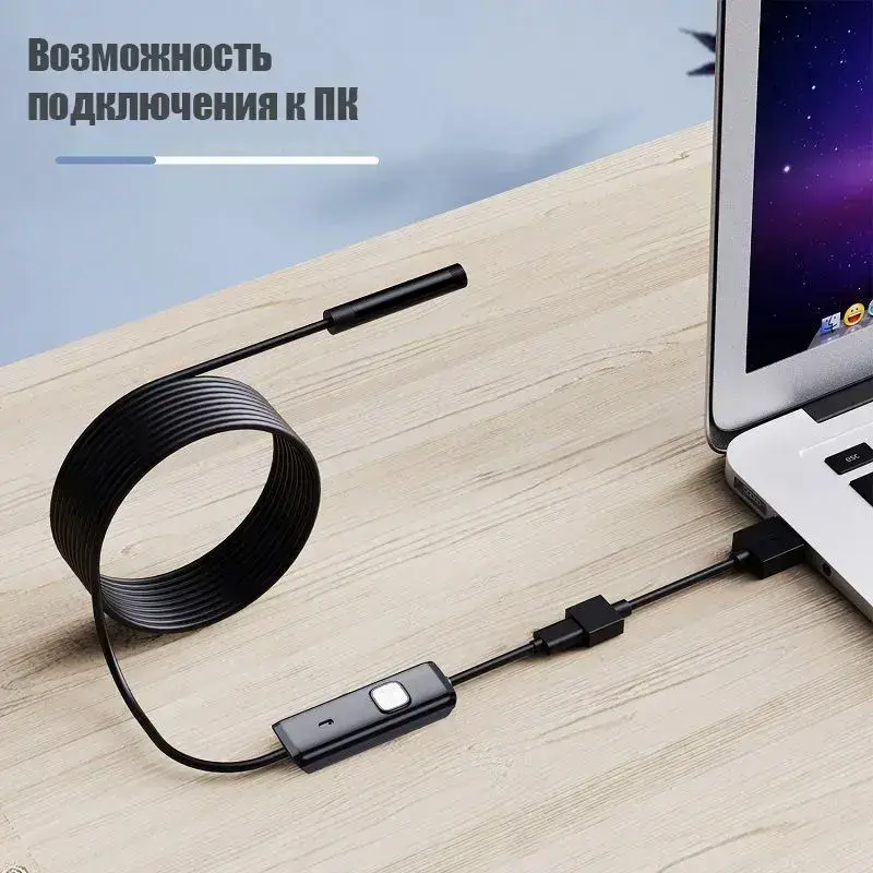 Видеоэндоскоп для смартфона / Эндоскоп ГИБКИЙ и для компьютера для Android, 1 метр, microUSB, USB, Type-S водонепроницаемый, для телефона и смартфона.