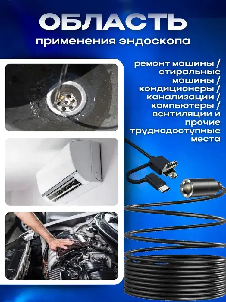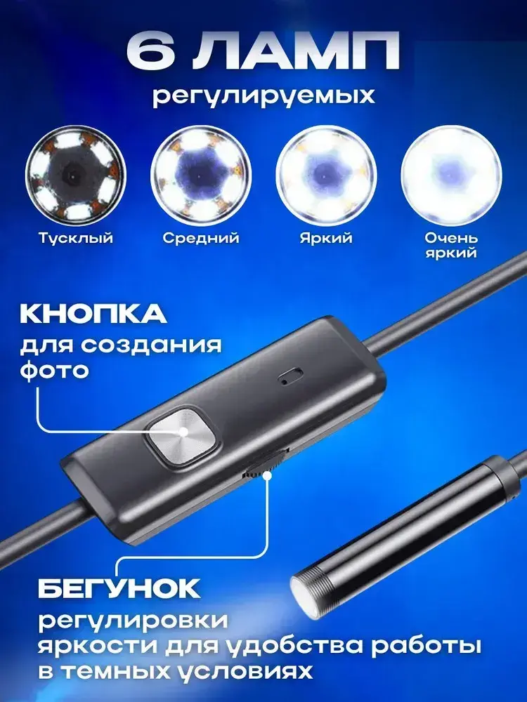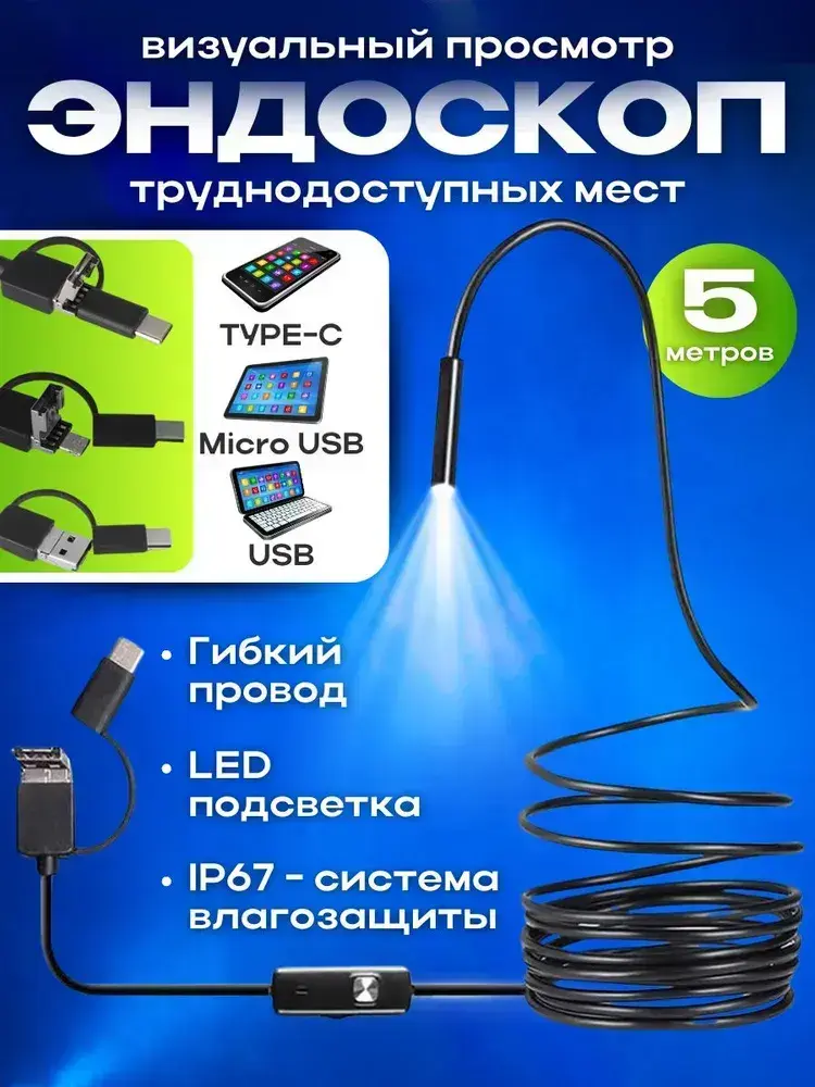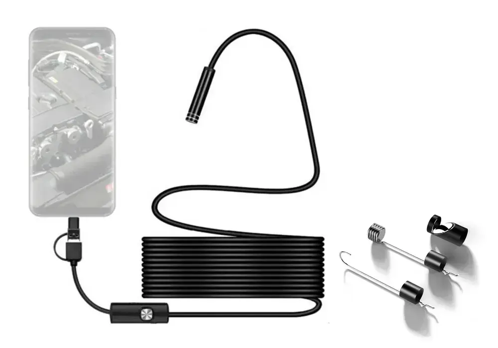 Видеоэндоскоп для смартфона с гибкой камерой, для компьютера, зонд с камерой для труднодоступных мест 5 метров