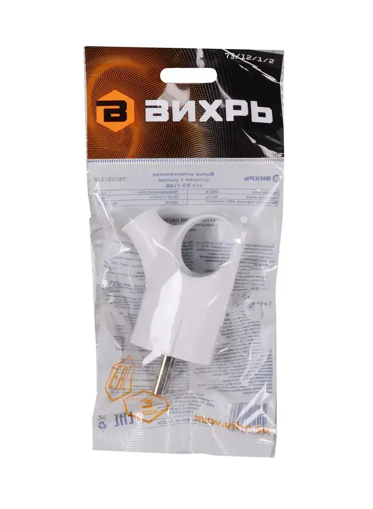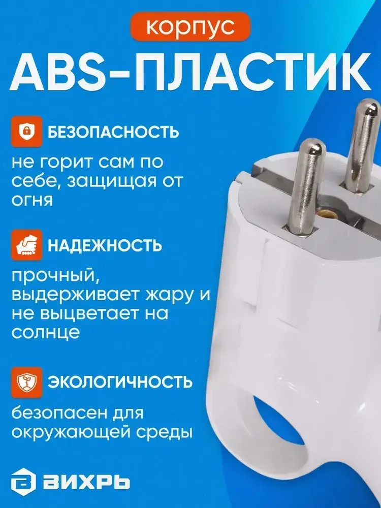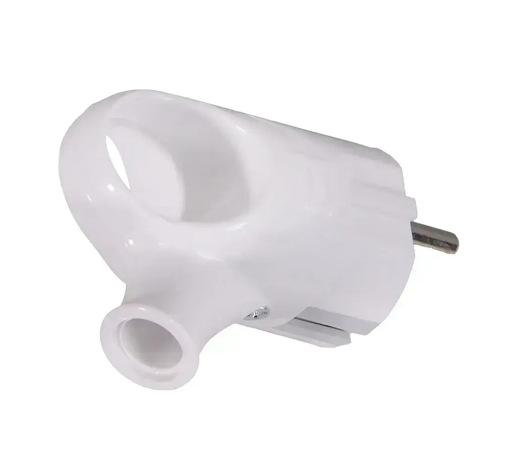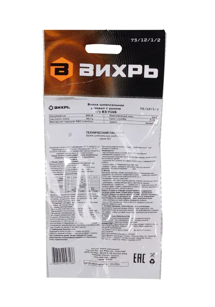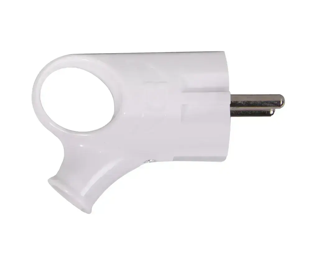 Вилка электрическая прямая угловая с ушком белая 16А 250В, Вихрь