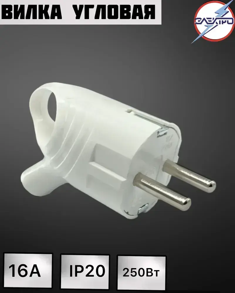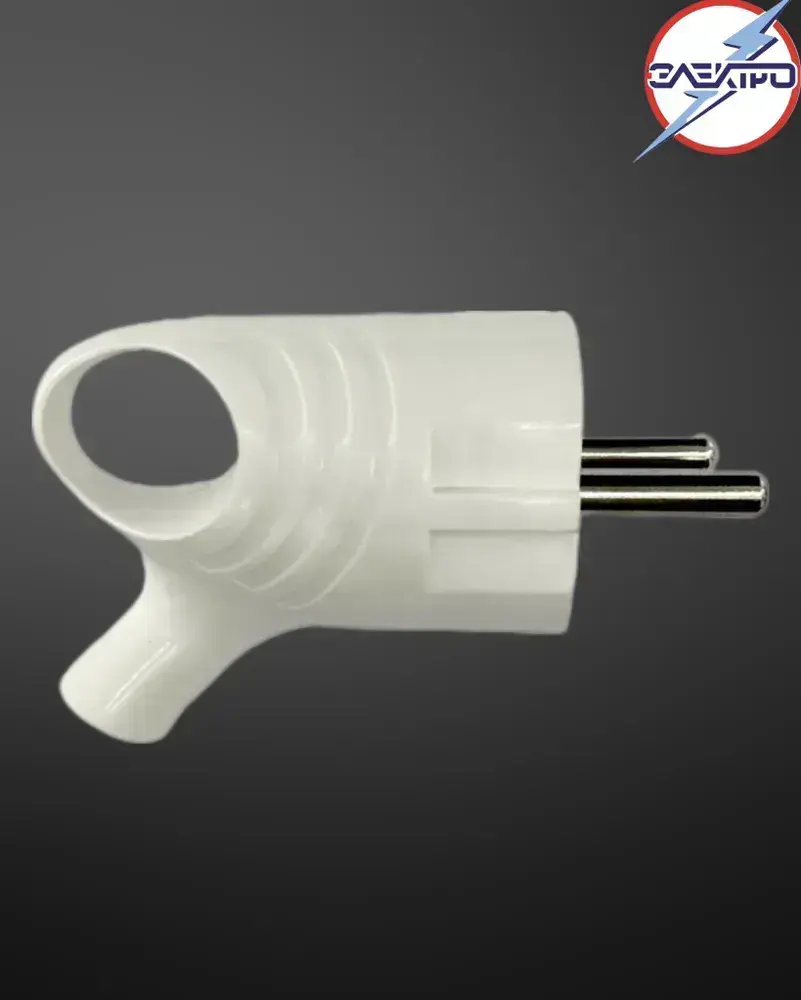 Вилка с ушком угловая белая 16А 1 штука в упаковке