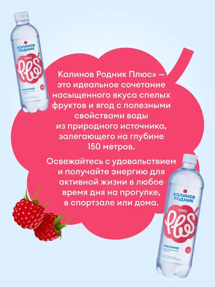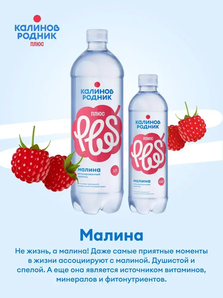 Вода Калинов Родник Плюс со вкусом Малины, негазированная 1 л