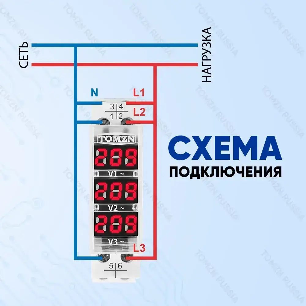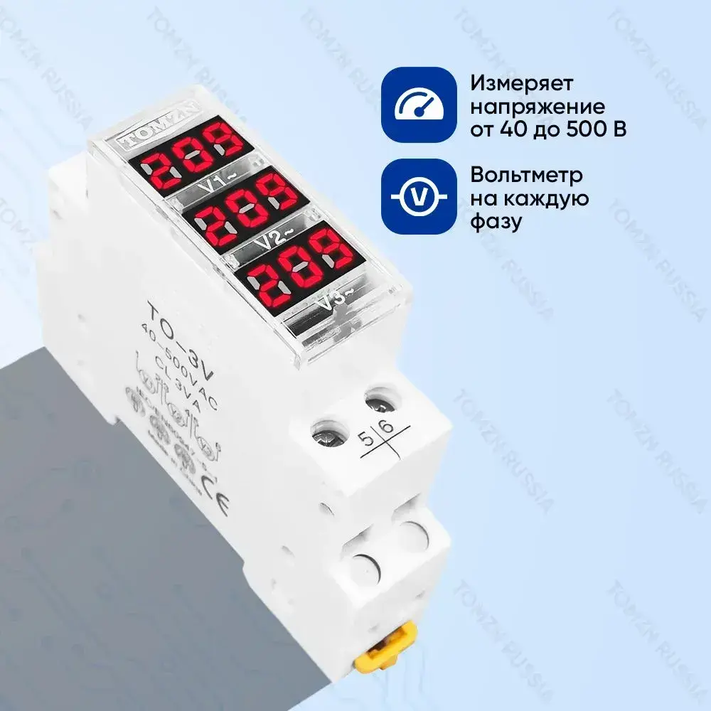 Вольтметр на DIN рейку TOMZN TO-3V 40-500 В / Цифровой вольтметр с внешним датчиком для переменного тока