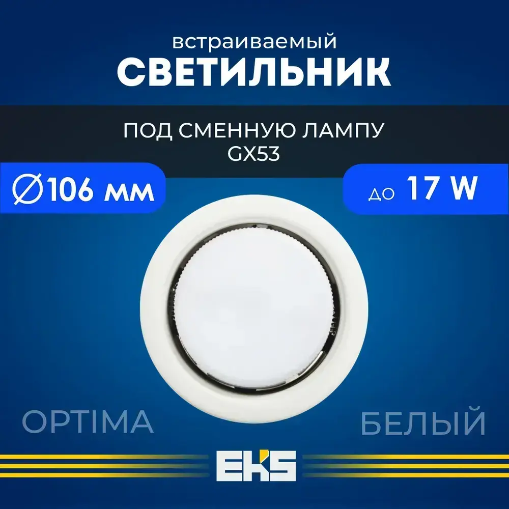Встраиваемый светильник- основание EKS Optima GX53 белый (до 17 Вт, IP 40) точечный, для натяжных потолков