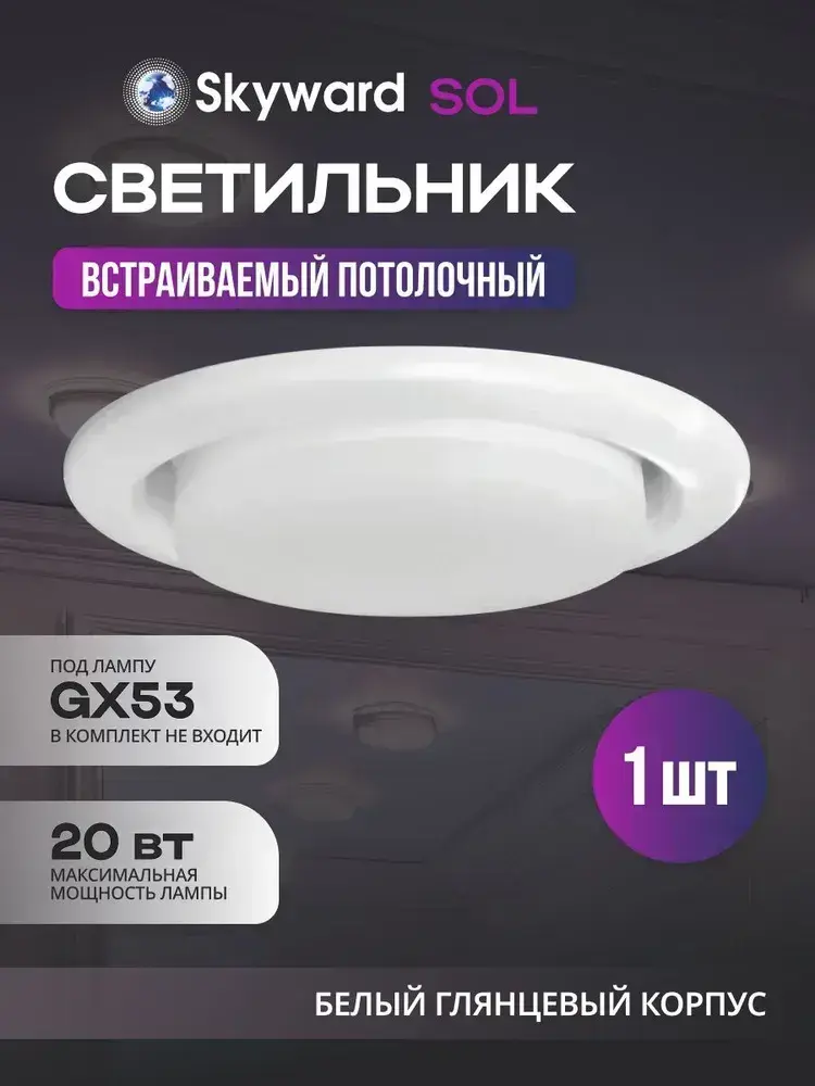 Встраиваемый светильник SKYWARD точечный потолочный белый глянцевый, 20 ВТ