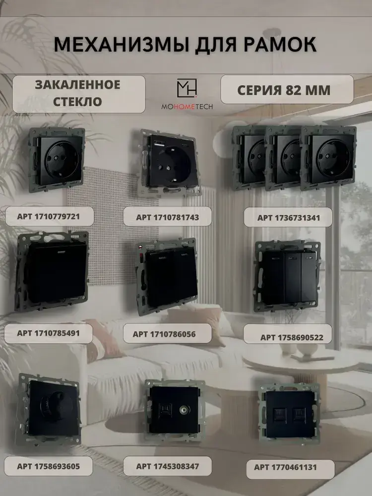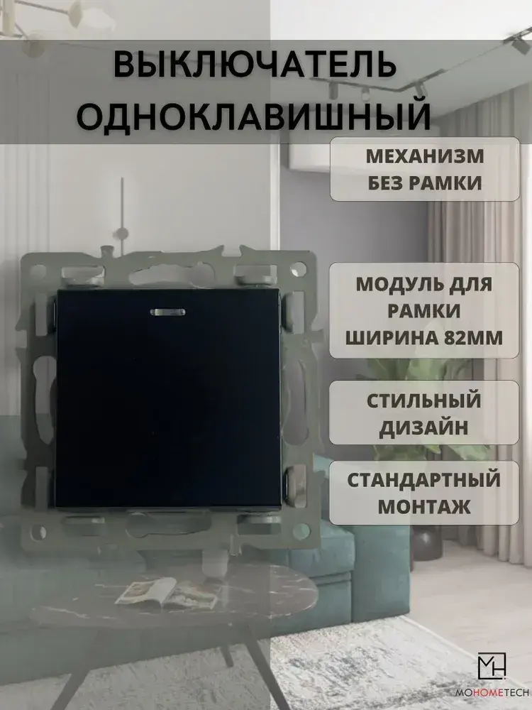 Встраиваемый выключатель черный, механизм одинарный, без рамки, подсветка клавиш