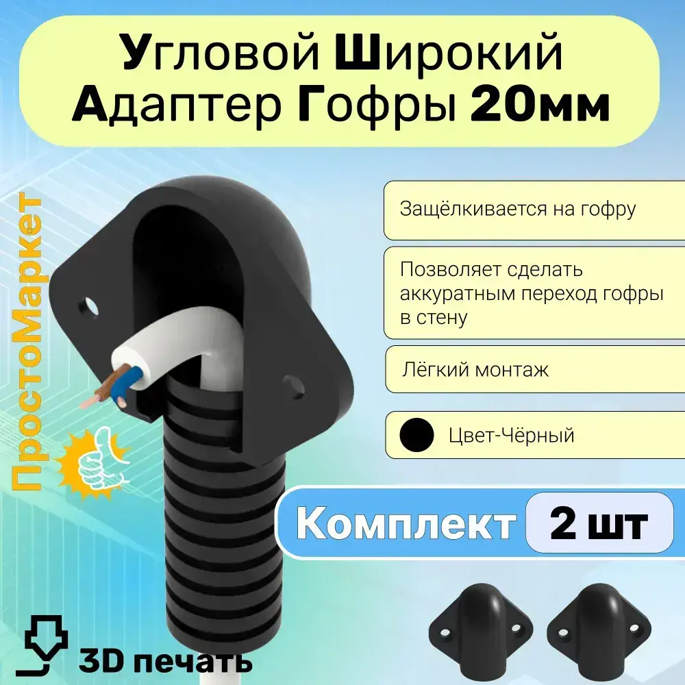 Ввод гофры 20мм в стену , 2 шт. Кабельный ввод, гибкий переход, адаптер переходник кабеля