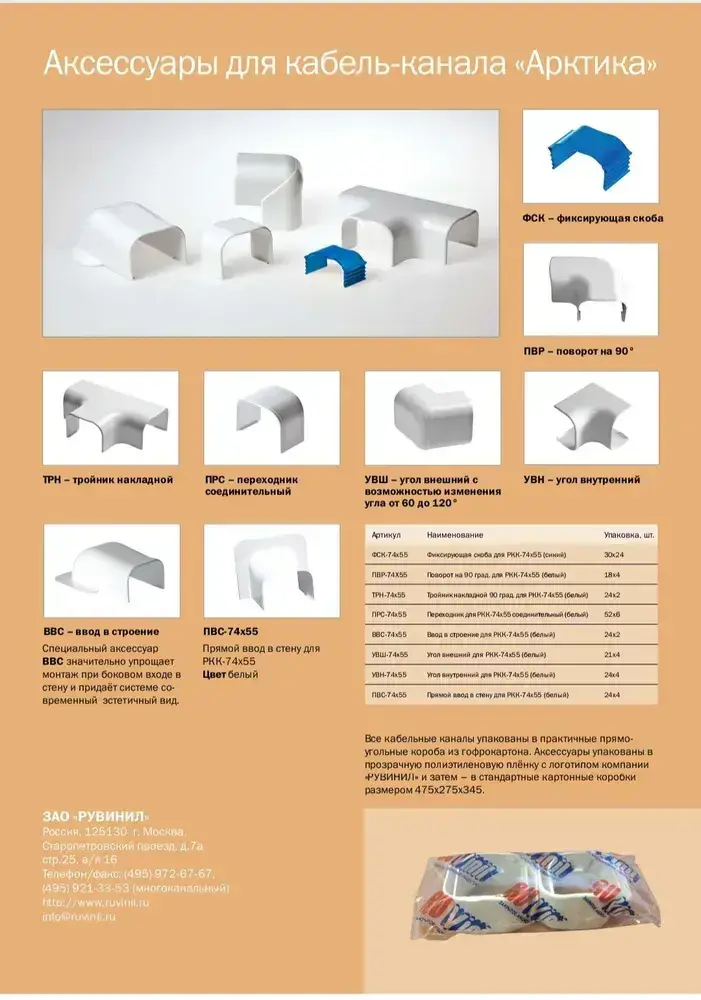 Ввод в строение боковой для кабель канала "Арктика" 74х55мм Ruvinil белый