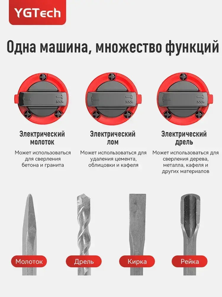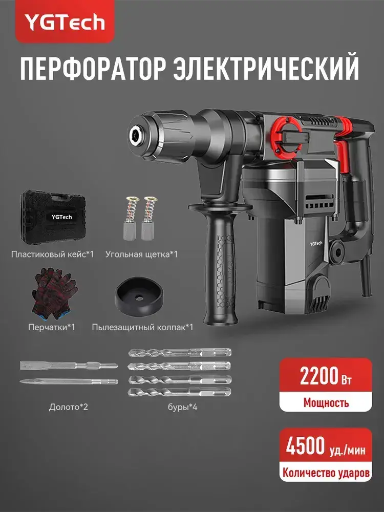 YGTECH Перфоратор 2200 Вт, 0 акк.