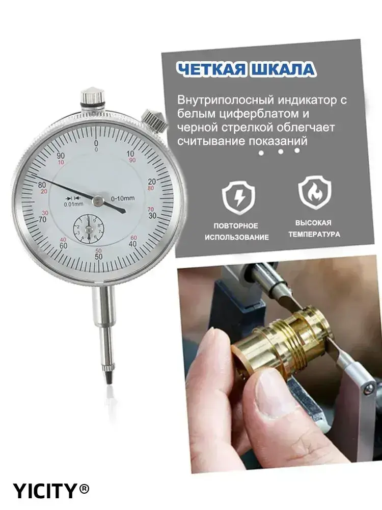 YICITY Индикатор часового типа 0-10 мм 0,01мм, измерительный механический