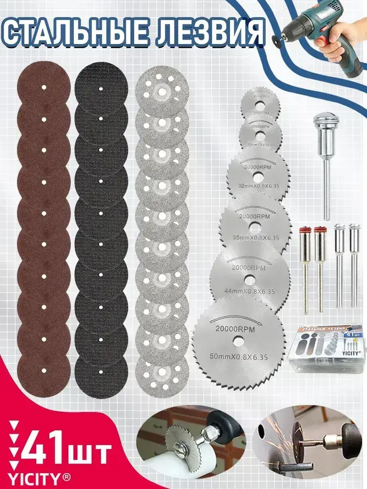 YICITY Набор отрезных дисков и кругов для гравера по дереву,для смолы металл дерево камень,насадки для гравера,41 шт