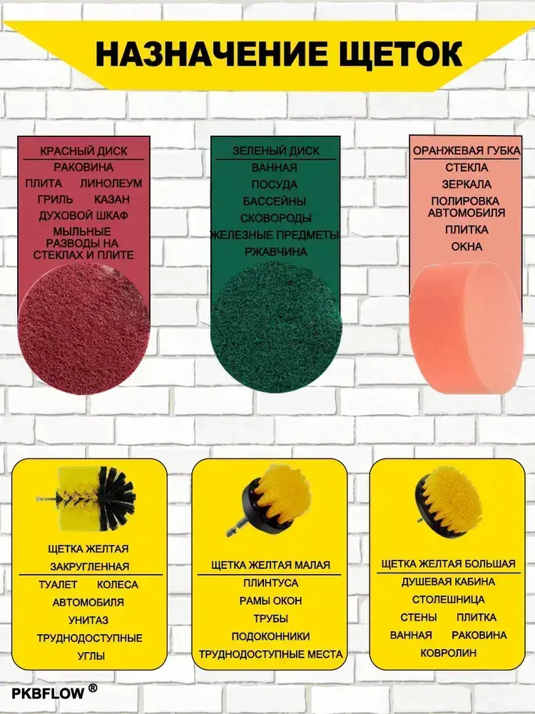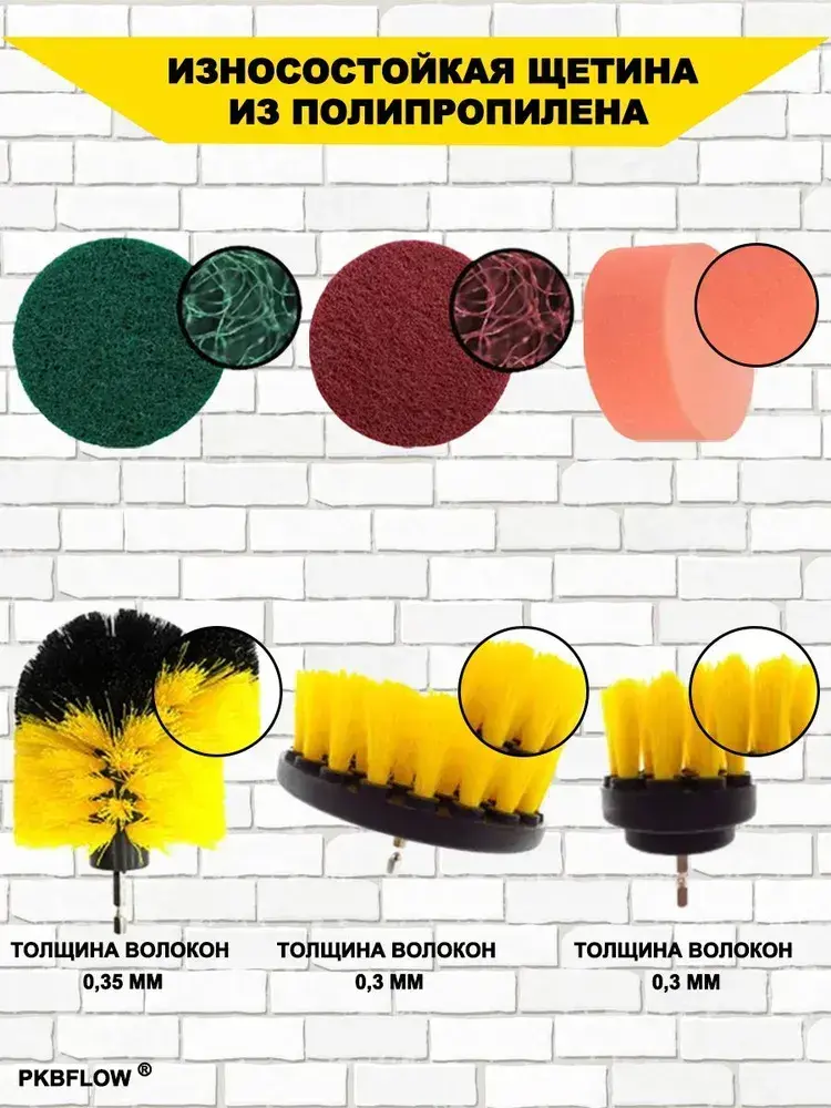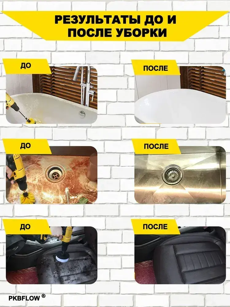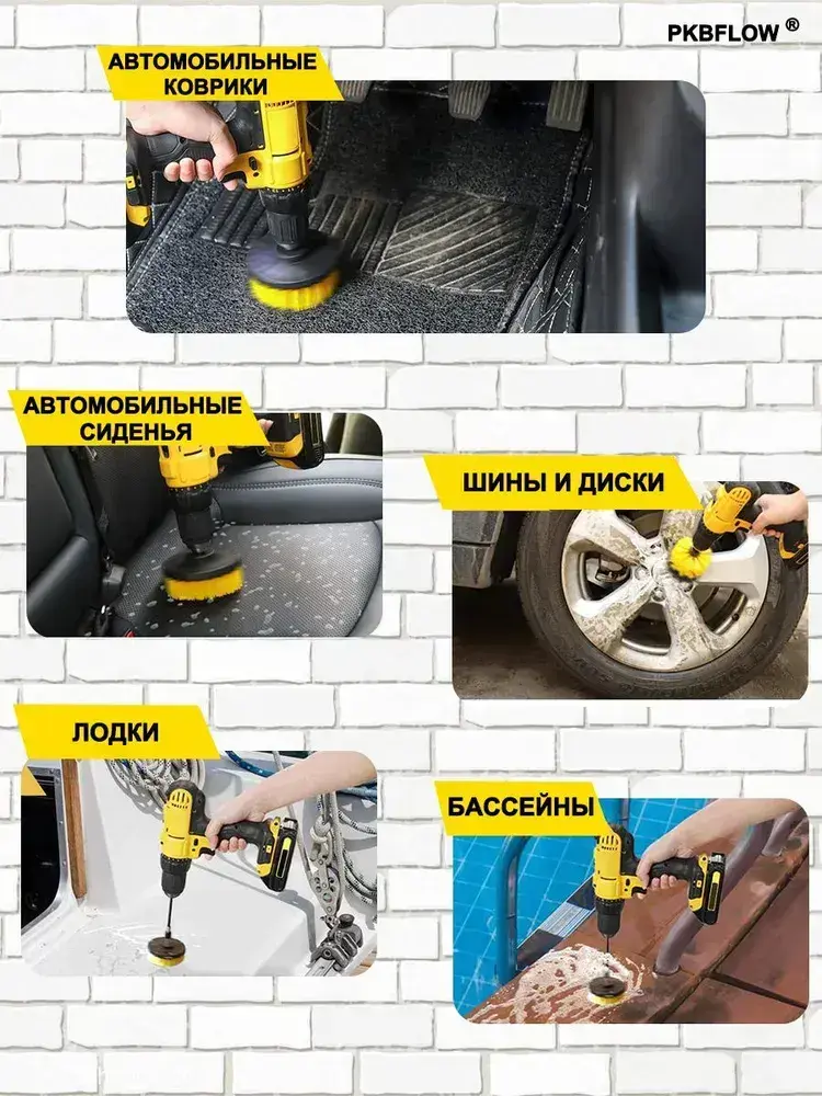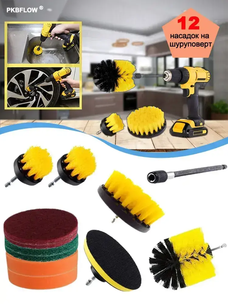 YICITY Набор щеток для химчистки и полировки авто 12 шт профессиональные насадки для дрели/шуруповерта, чистка салона, дисков, кузова (износостойкие, универсальные для авто и дома)