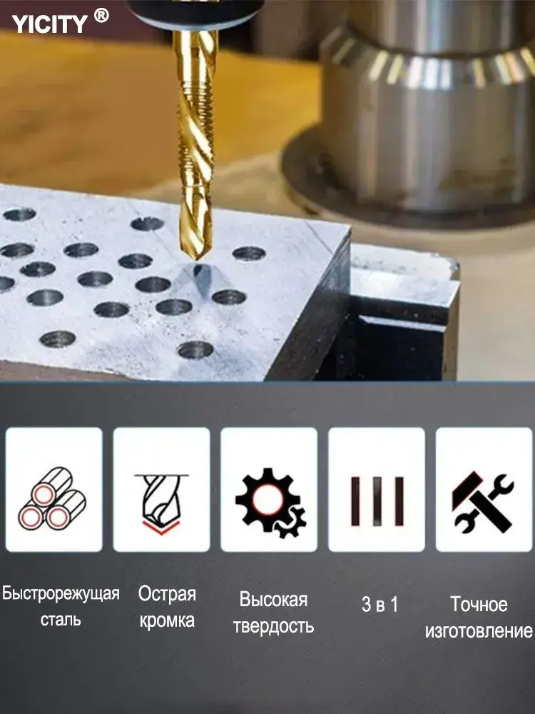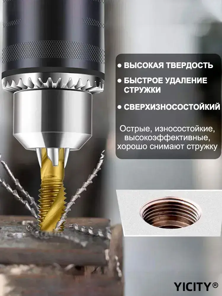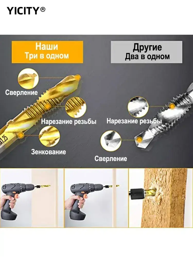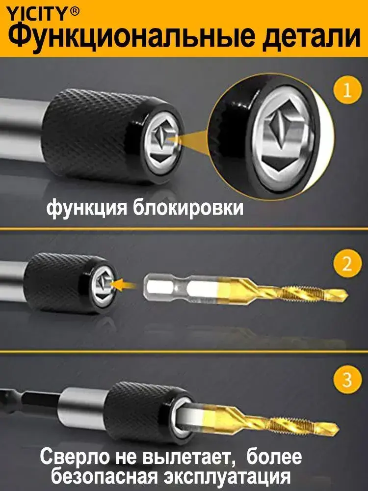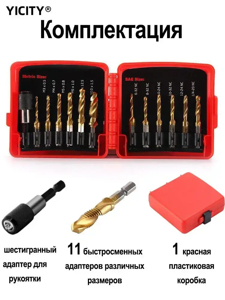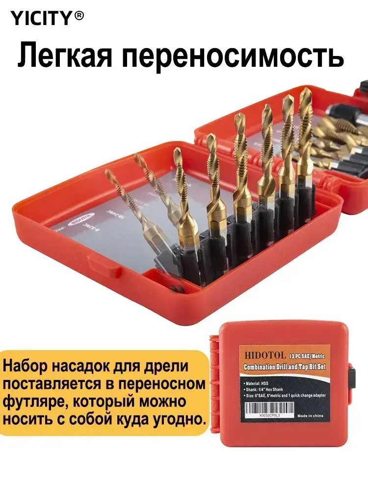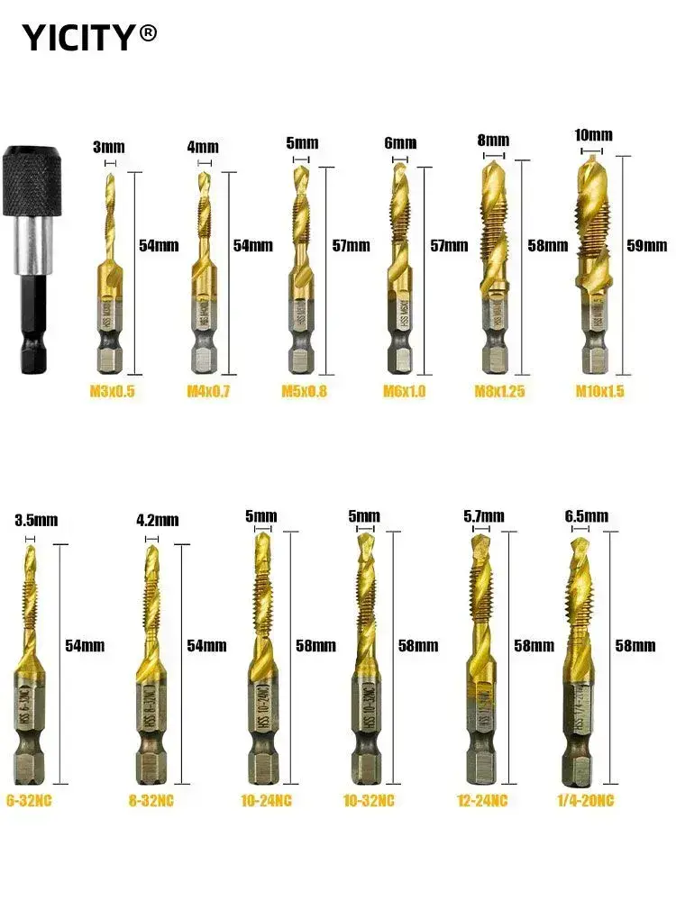 YICITY Набор сверл-метчиков длинные с титановым покрытием из быстрорежущей стали / В наборе 13шт