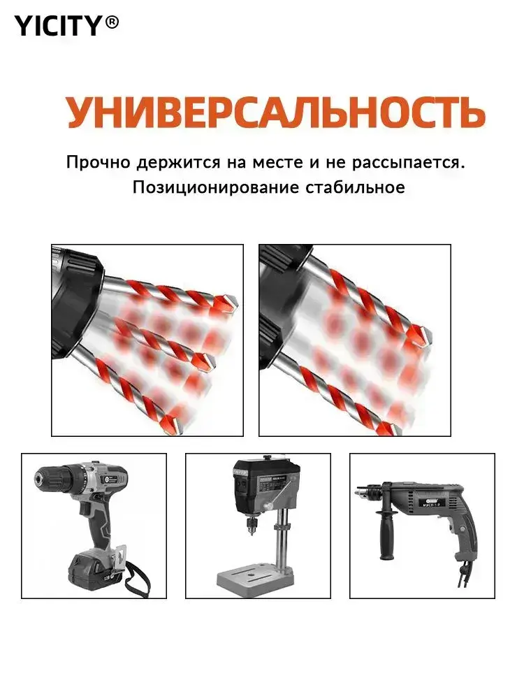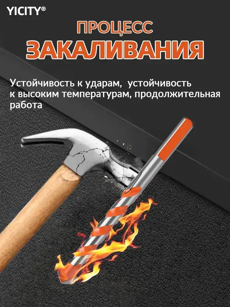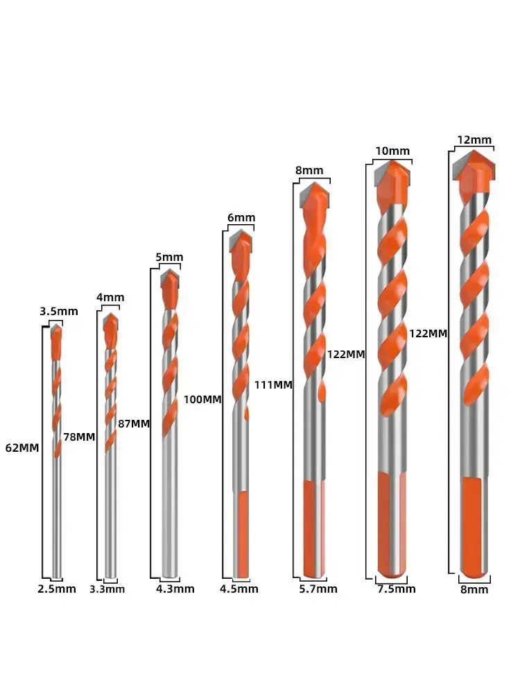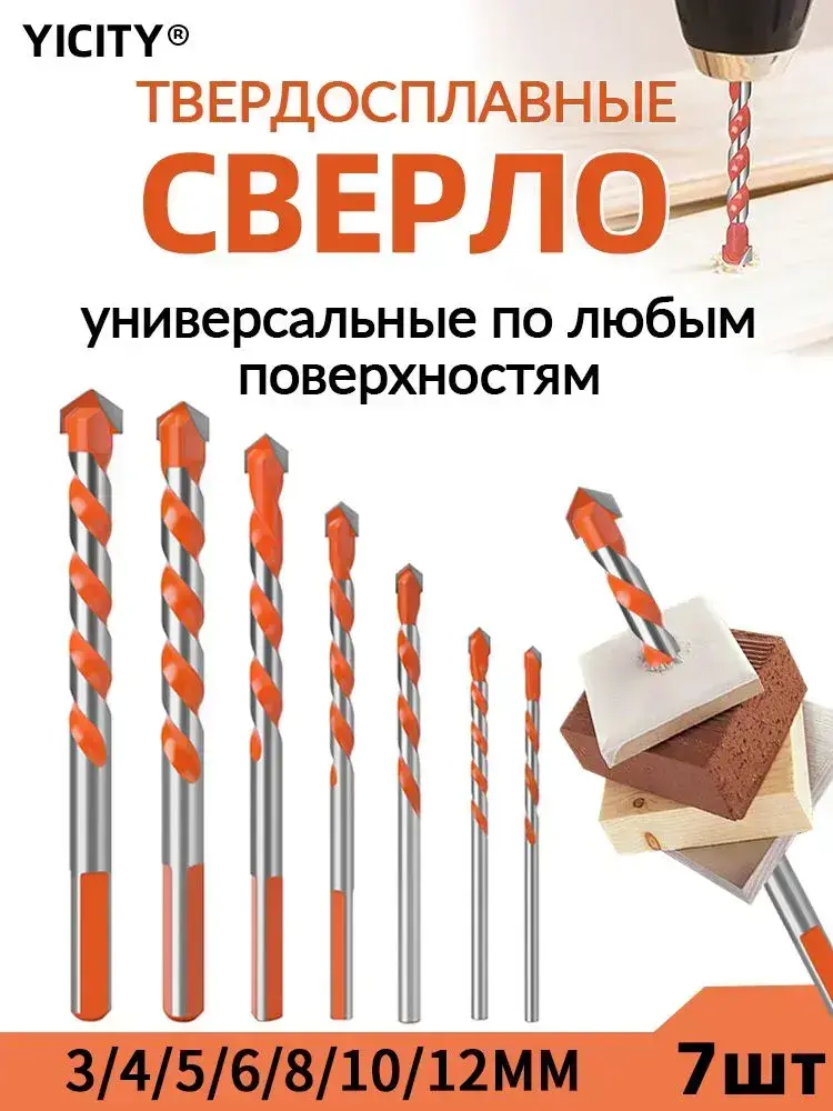 YICITY Сверла универсальные 7 шт. (3-4-5-6-8-10-12мм) по стеклу, керамограниту, мрамору, бетону, металлу, пластику, дереву / Материал сплава YG8