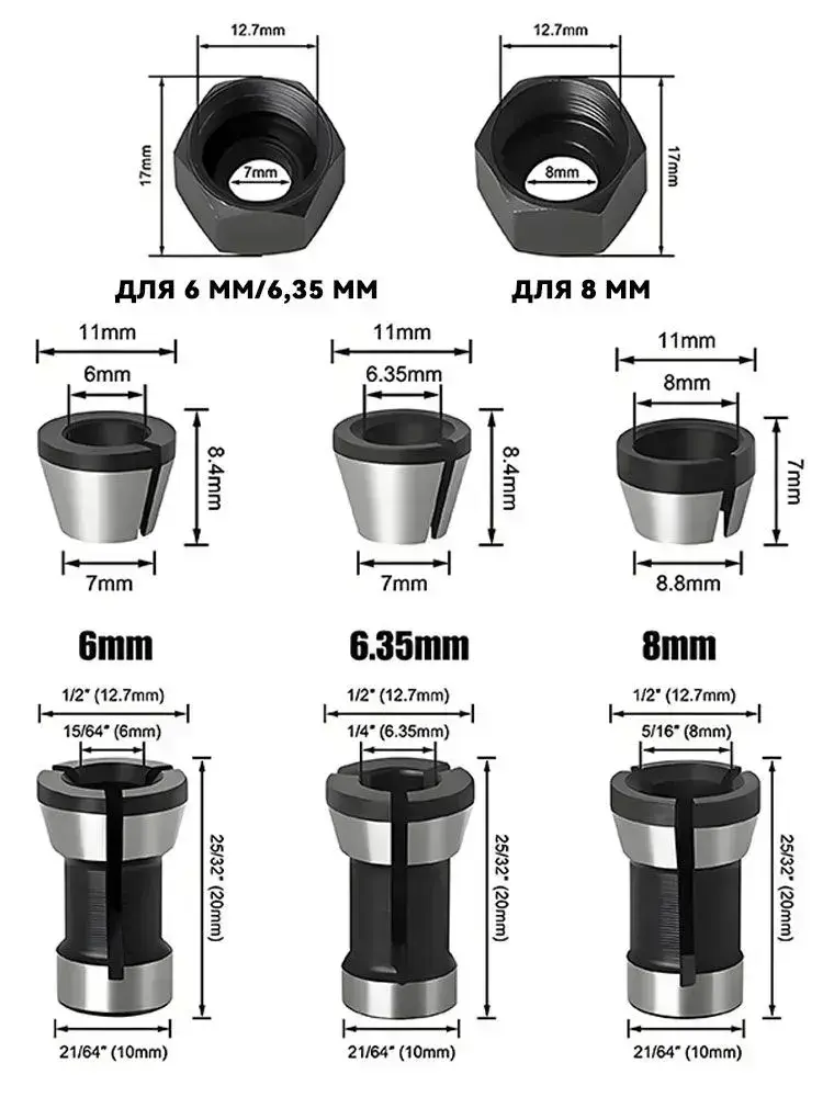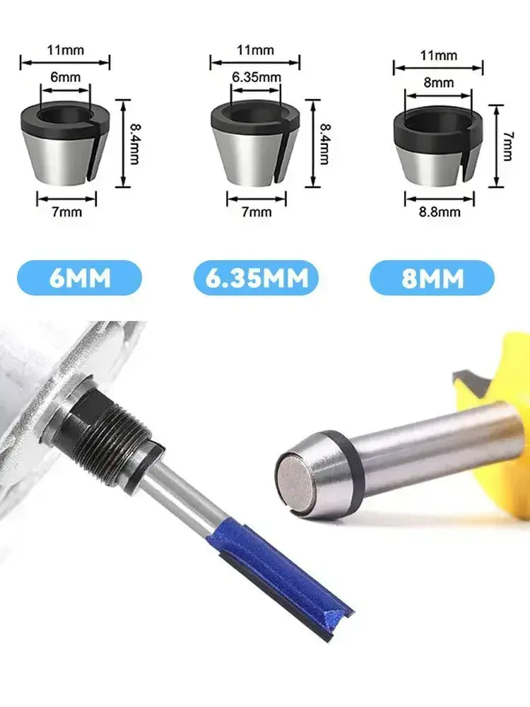 YICITY Цанга для фрезера 8 мм / 6 мм / 6,35 мм, цанговый зажим для станка. 8 шт