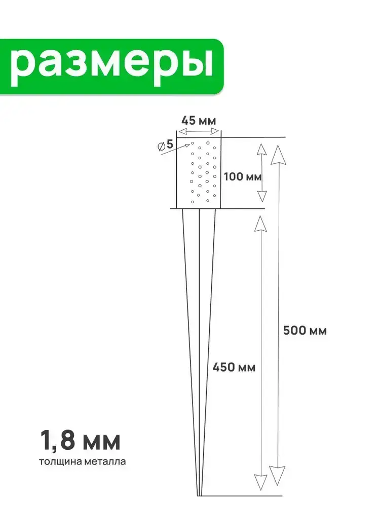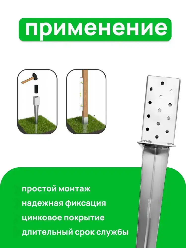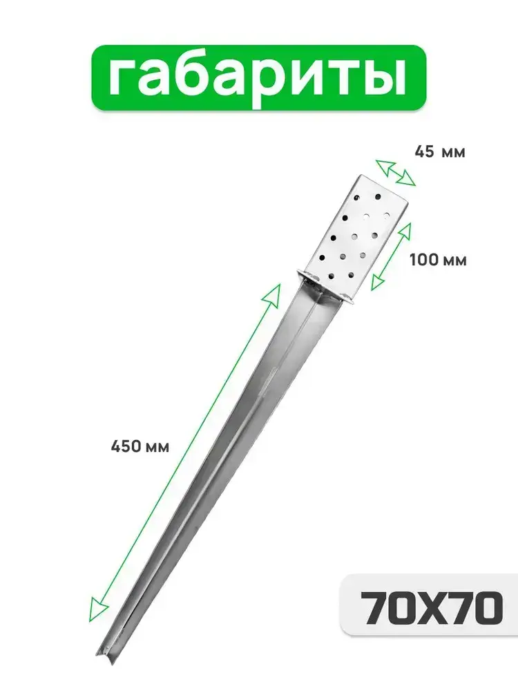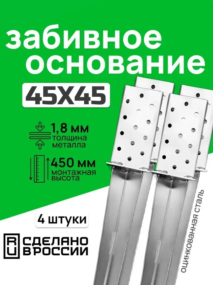 Забивное основание столба 45х45, 450 мм, крепеж для стоек в землю (4 шт)