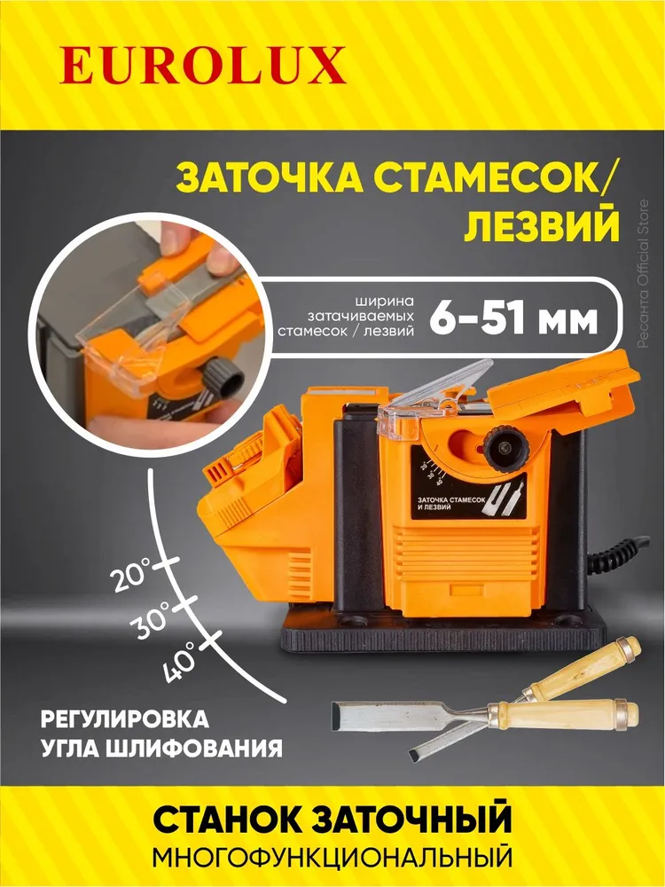 Заточной станок многофункциональный СЗМ-3 MAX Eurolux - для ножей, для ножницы, для стамесок, для сверел, станок заточной