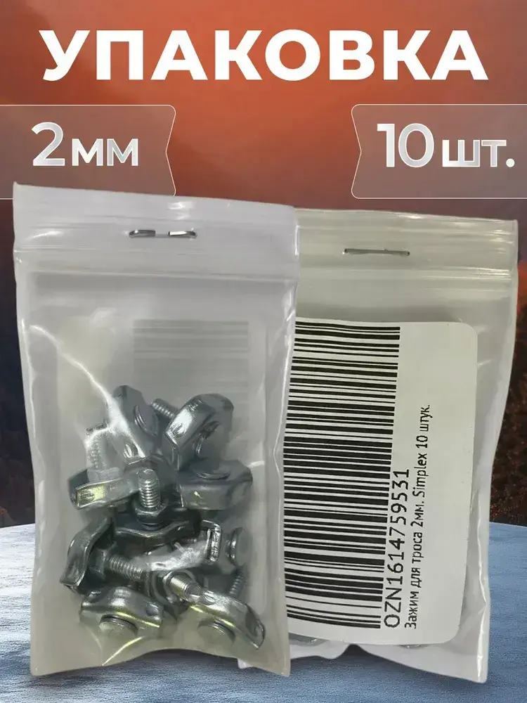 Зажим для троса 2мм. Simplex (10 шт). Одинарный соединитель троса 2 мм.