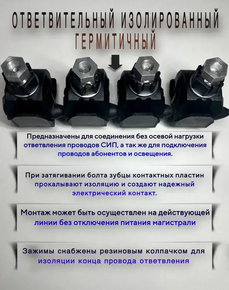 Зажим ответвительный, герметичный, прокалывающий для СИП, P6-120 4 шт.,(6-120/1.5-16мм2)