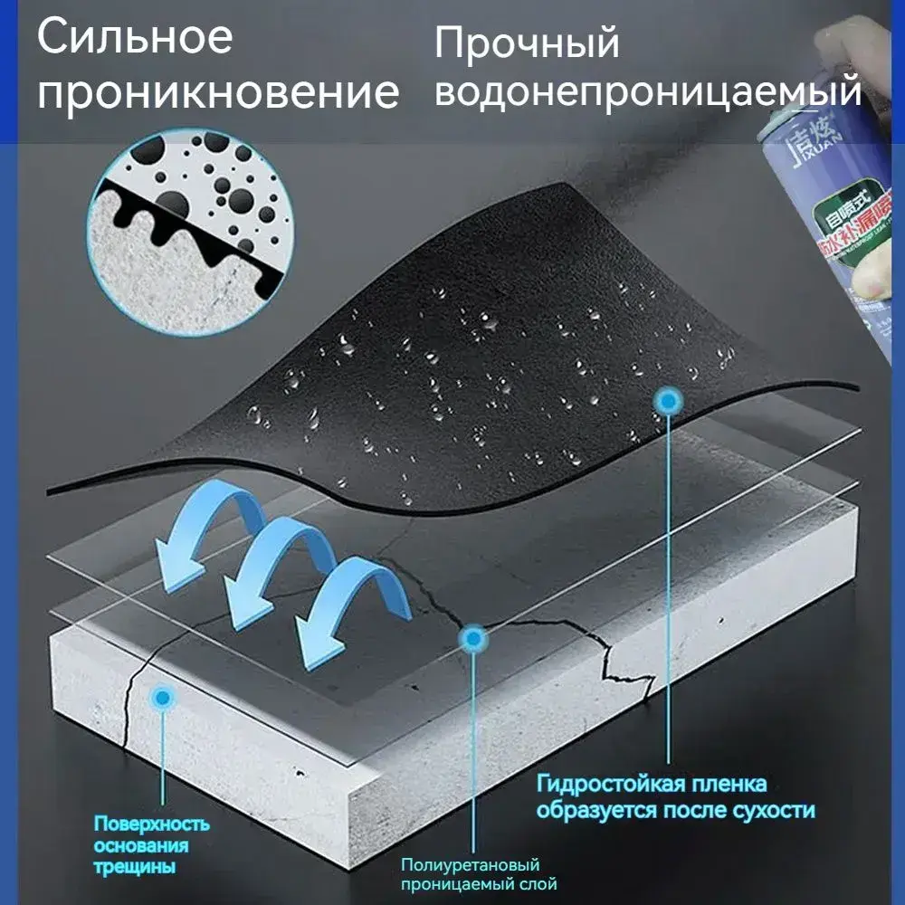 жидкая резина фикс про спрей 3в1 Водонепроницаемый для ремонта крыши, устранения утечек, герметизации трещин, предотвращения протечек на наружных стенах,300 мл(белое)