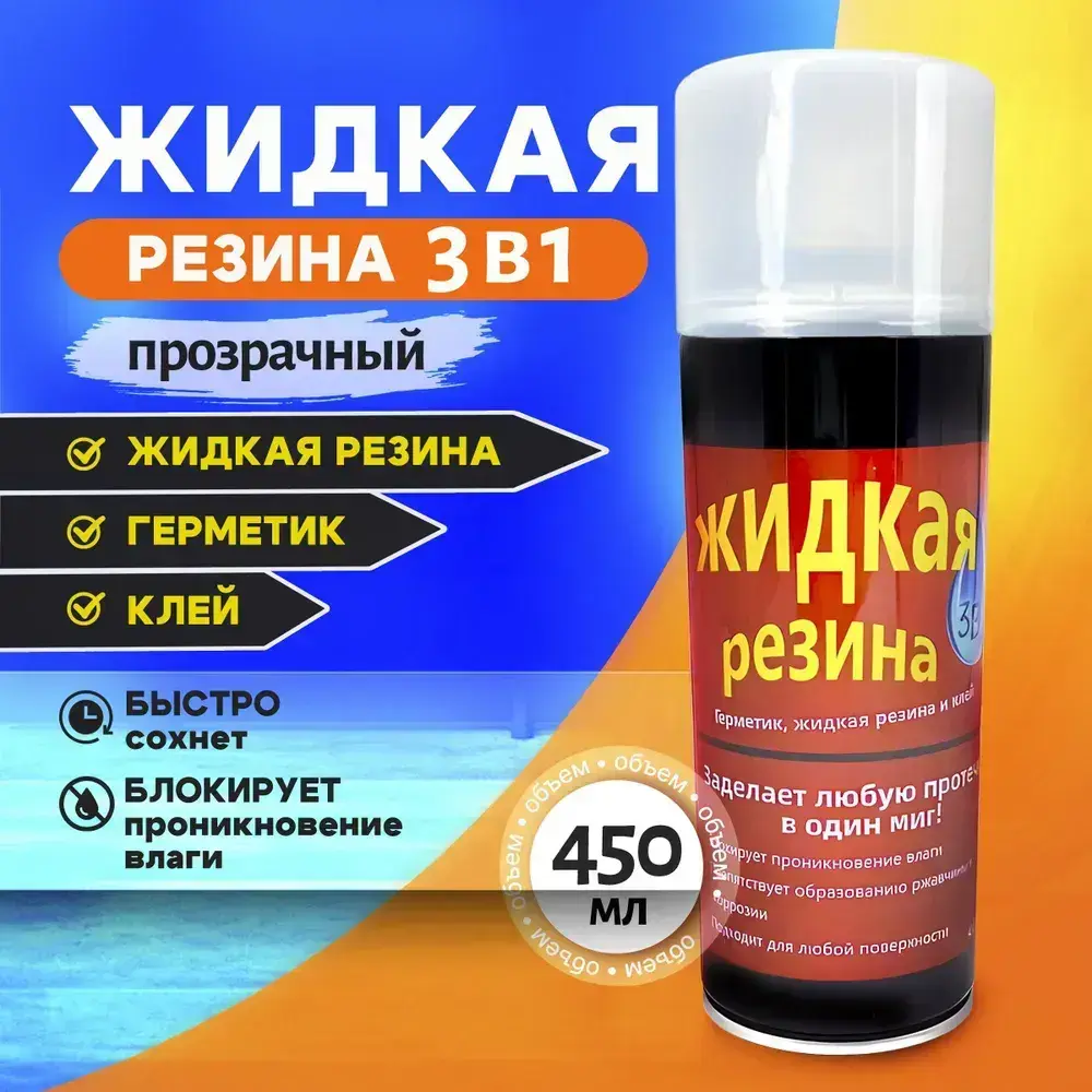 Жидкая резина герметик 3в1/ цвет прозрачный/ 450 мл