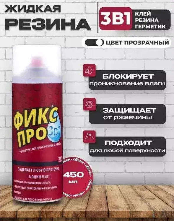 Жидкая резина; Герметик Фикс Про 3в1, клей строительный прозрачный