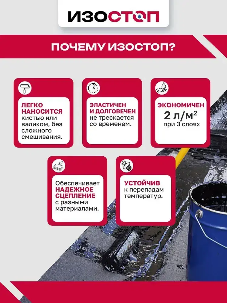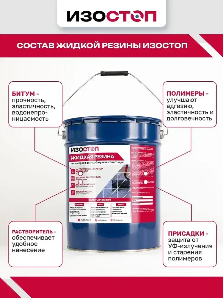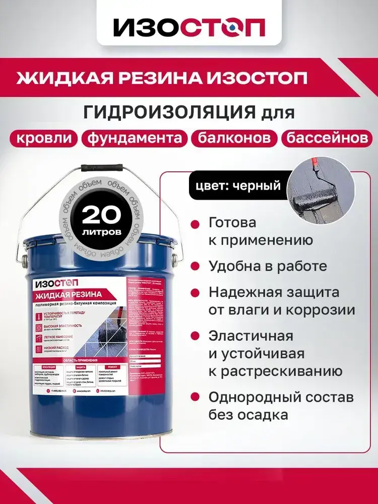 Жидкая резина "Гидроизол ПБК "IZOSTOP", ведро 20 литров