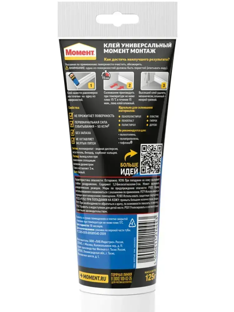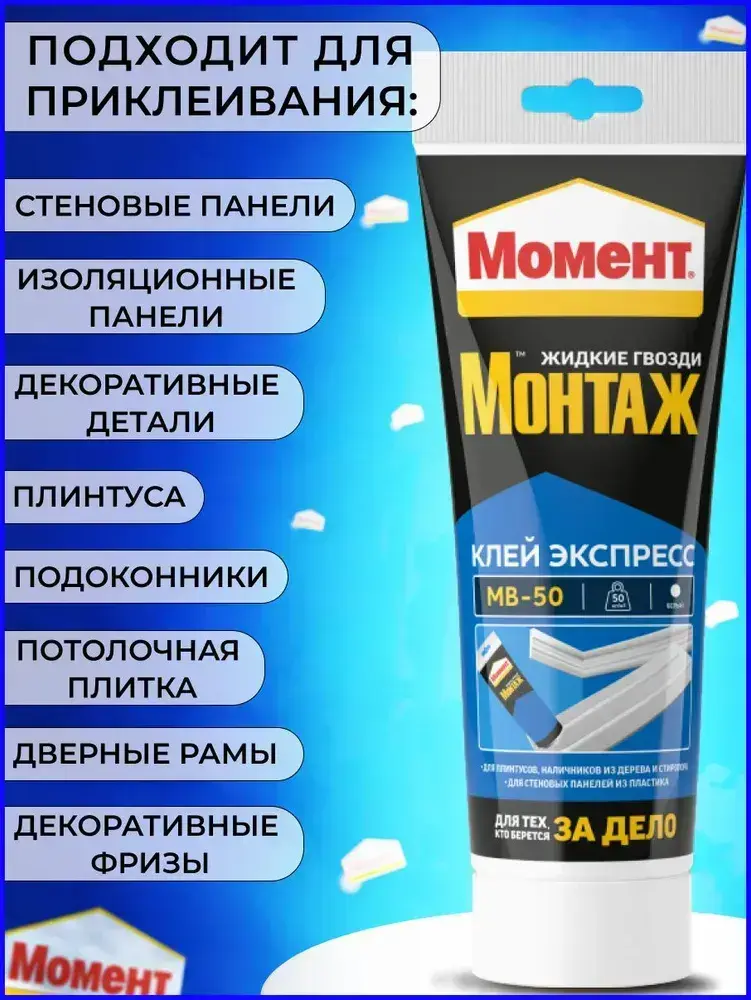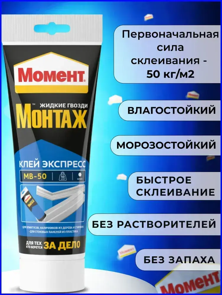 Жидкие гвозди Момент Монтаж МВ-50 Экспресс монтажный клей, 125 гр белый
