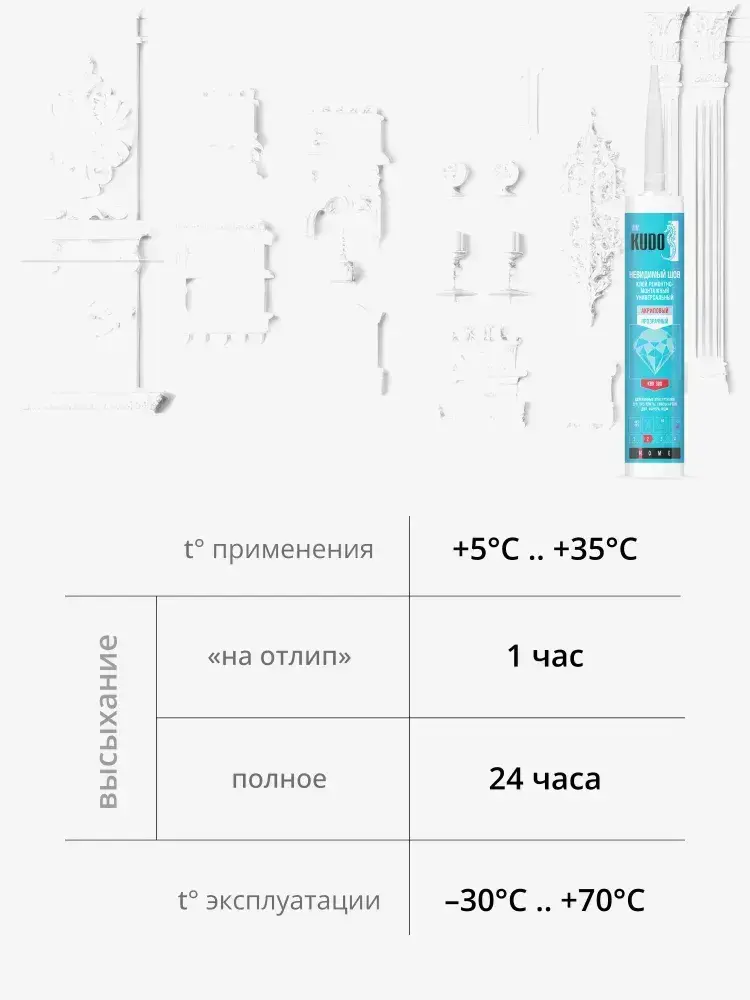 Жидкие гвозди - невидимый шов KUDO "KBK 300", монтажный клей, акриловый, прозрачный