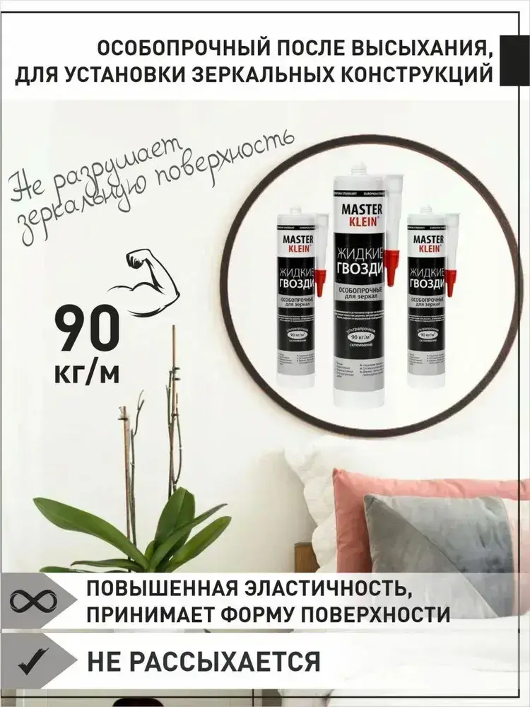 Жидкие гвозди ОСОБОПРОЧНЫЕ для зеркал белые "Master Klein" 310мл