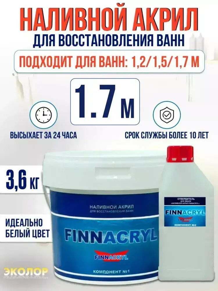 Жидкий акрил для ванны Finnacryl 1,2-1,7 м. 3,6 кг