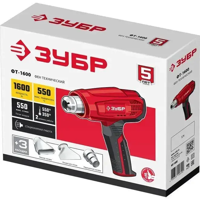 ЗУБР 1600 Вт, технический фен (ФТ-1600)