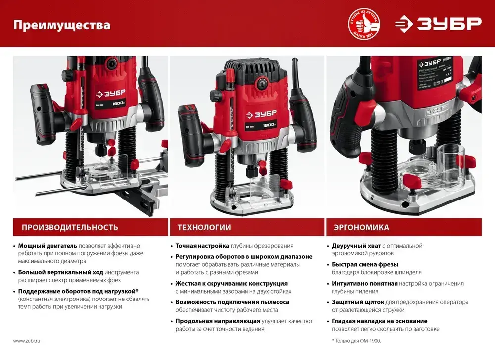 ЗУБР 1900 Вт, 50 мм, универсальный фрезер (ФМ-1900)
