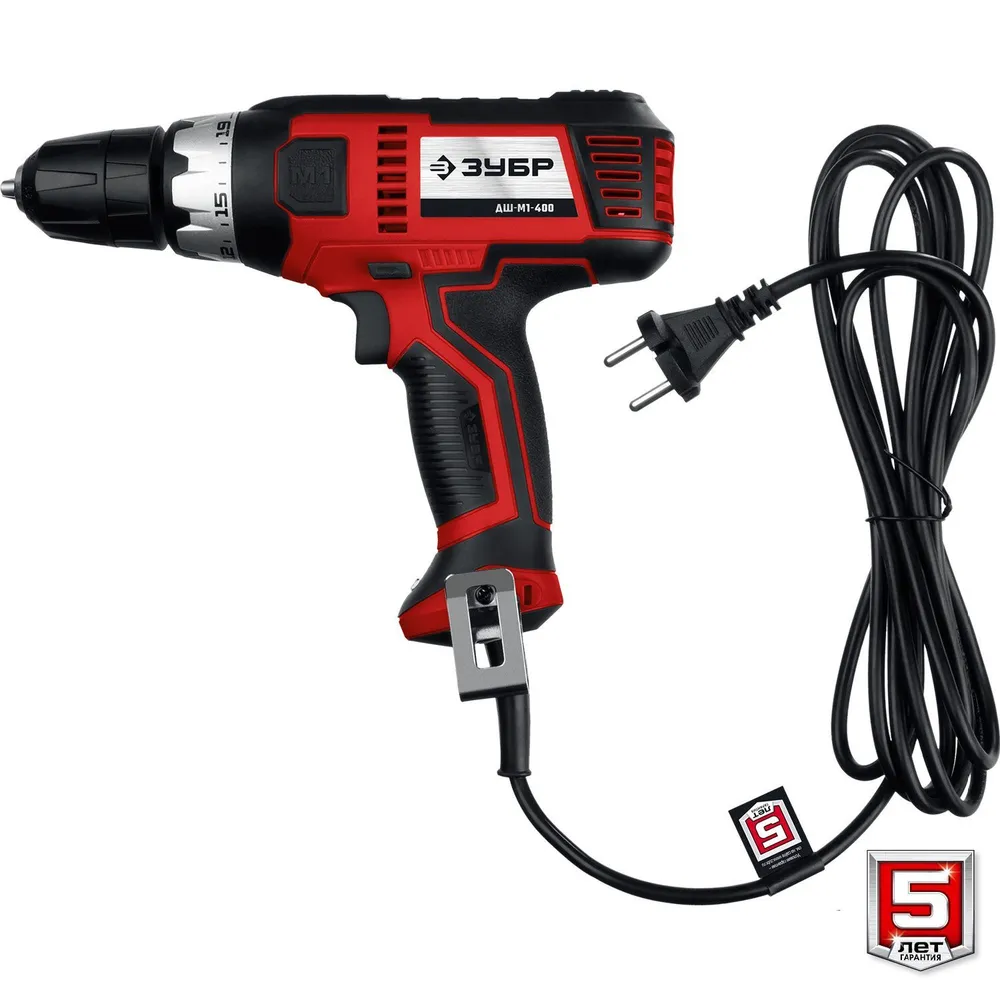 ЗУБР 400 Вт, 28 Н м, сетевая дрель-шуруповерт (ДШ-М1-400)