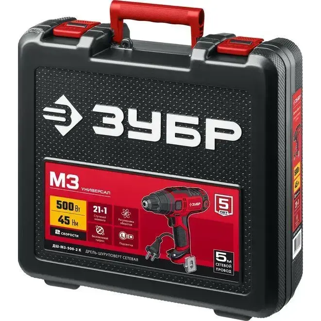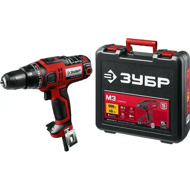 ЗУБР 500 Вт, 45 Нм, кейс, сетевая дрель-шуруповерт (ДШ-М3-500-2 К)