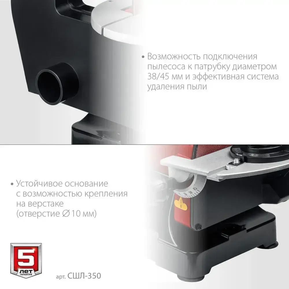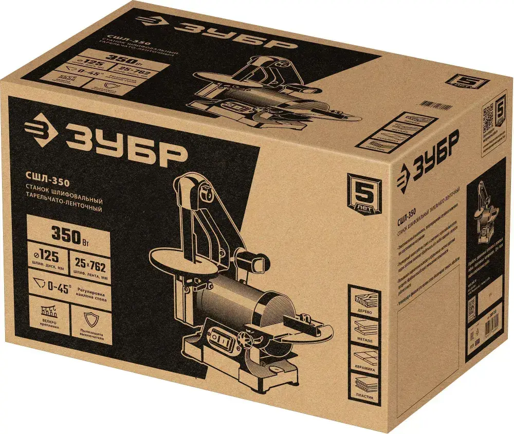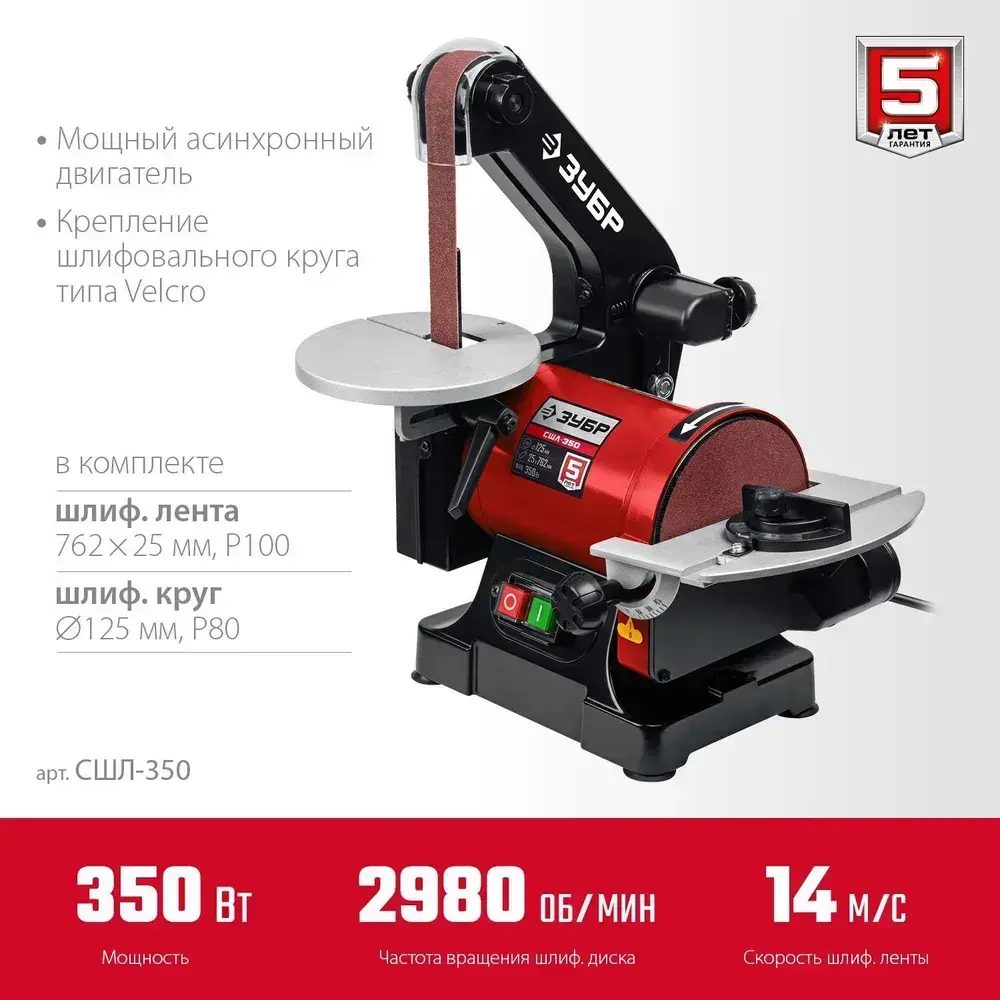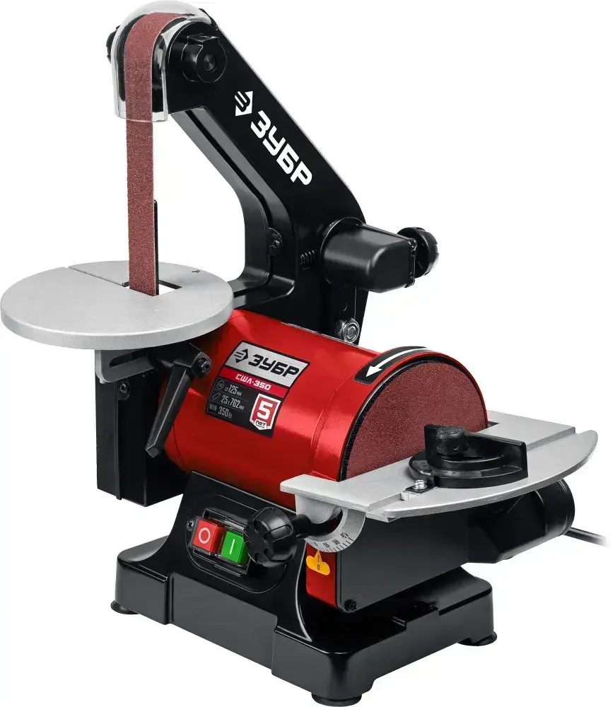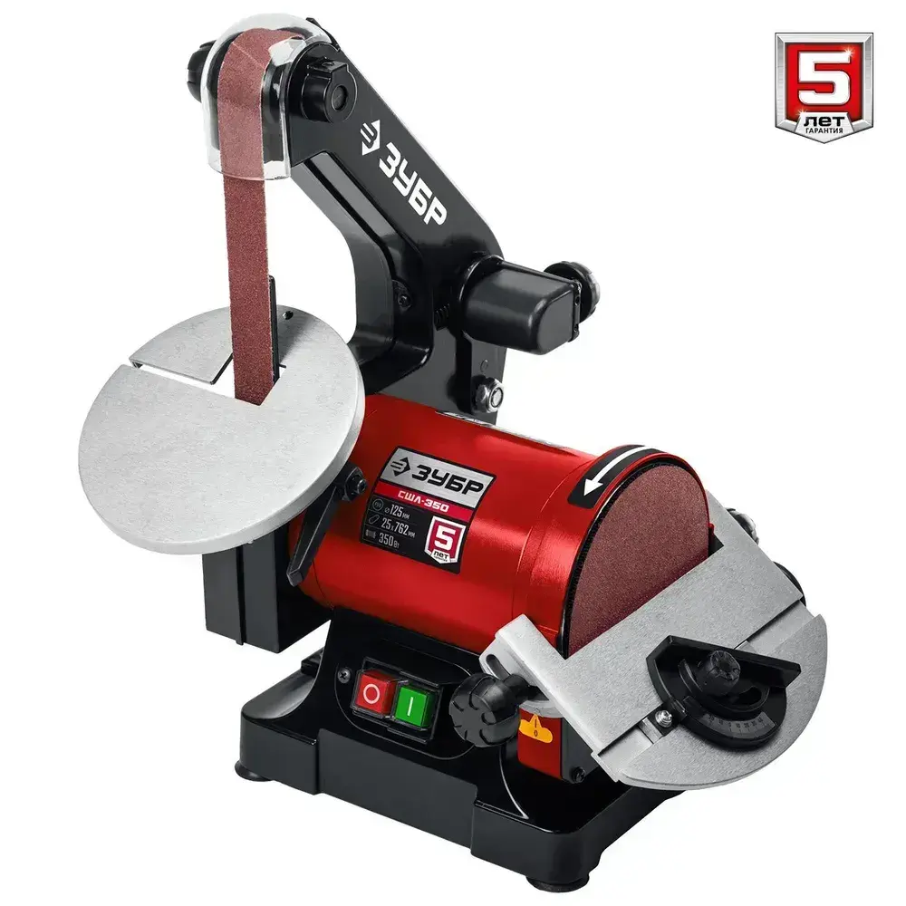 ЗУБР d 125 мм, 25 х 762 мм лента, 350 Вт, тарельчато - ленточный шлифовальный станок (СШЛ-350)