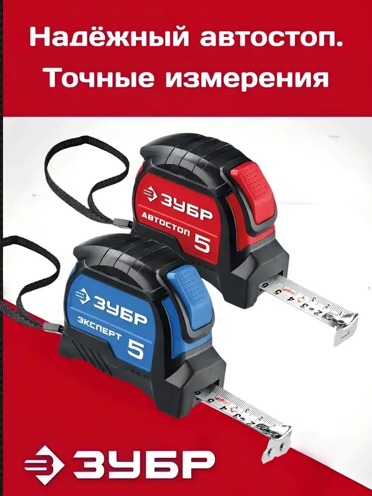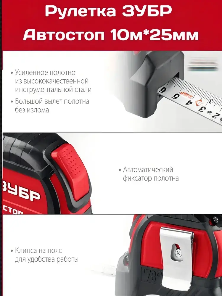 ЗУБР Измерительная рулетка 10 м х 25 мм. с автостопом и ударостойким обрезиненным корпусом