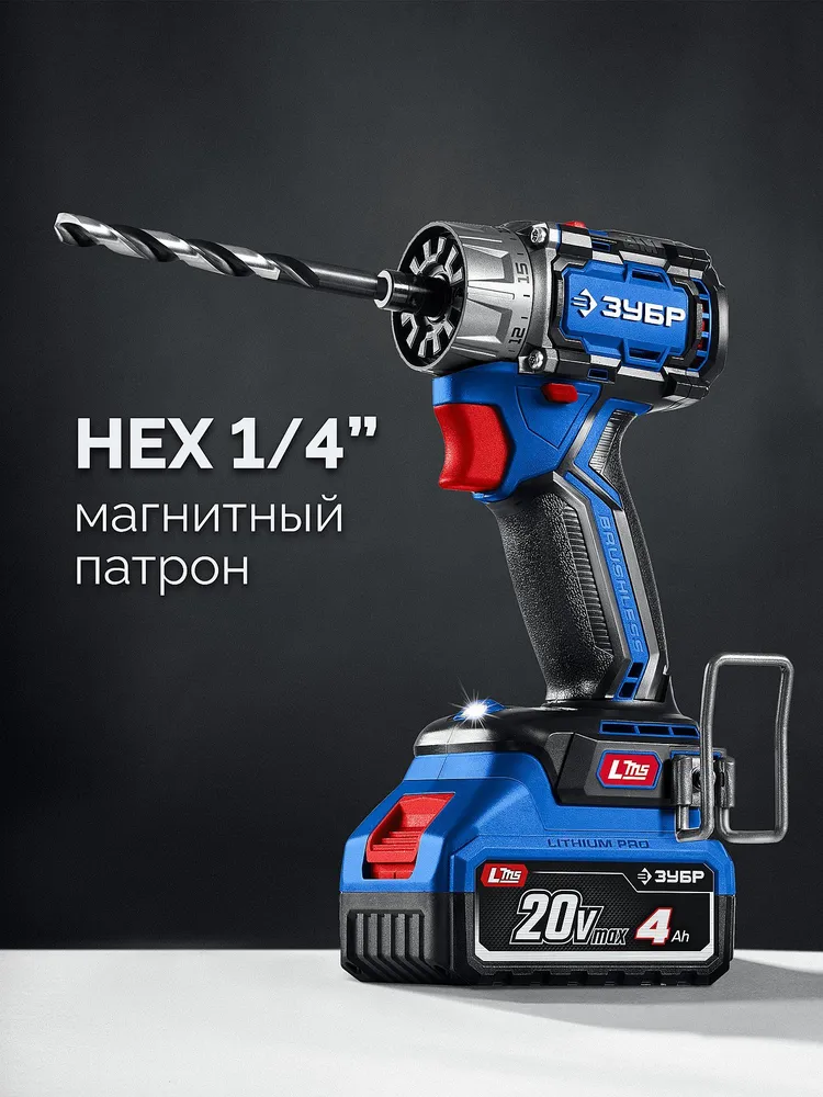 ЗУБР КОМПАКТ Комби, 20 В, 50 Н м, без АКБ (LMS), бесщеточная дрель-шуруповерт, Профессионал (DB-50-H3)