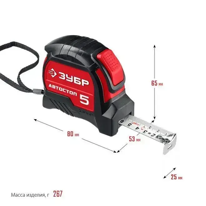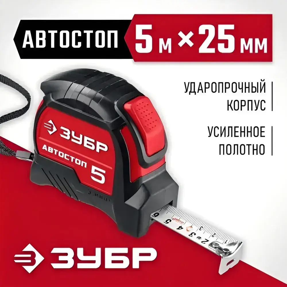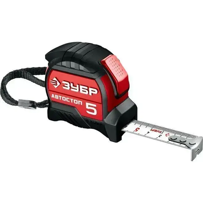 ЗУБР. Строительная рулетка 5 м х 25 мм. с автостопом и ударостойким обрезиненным корпусом